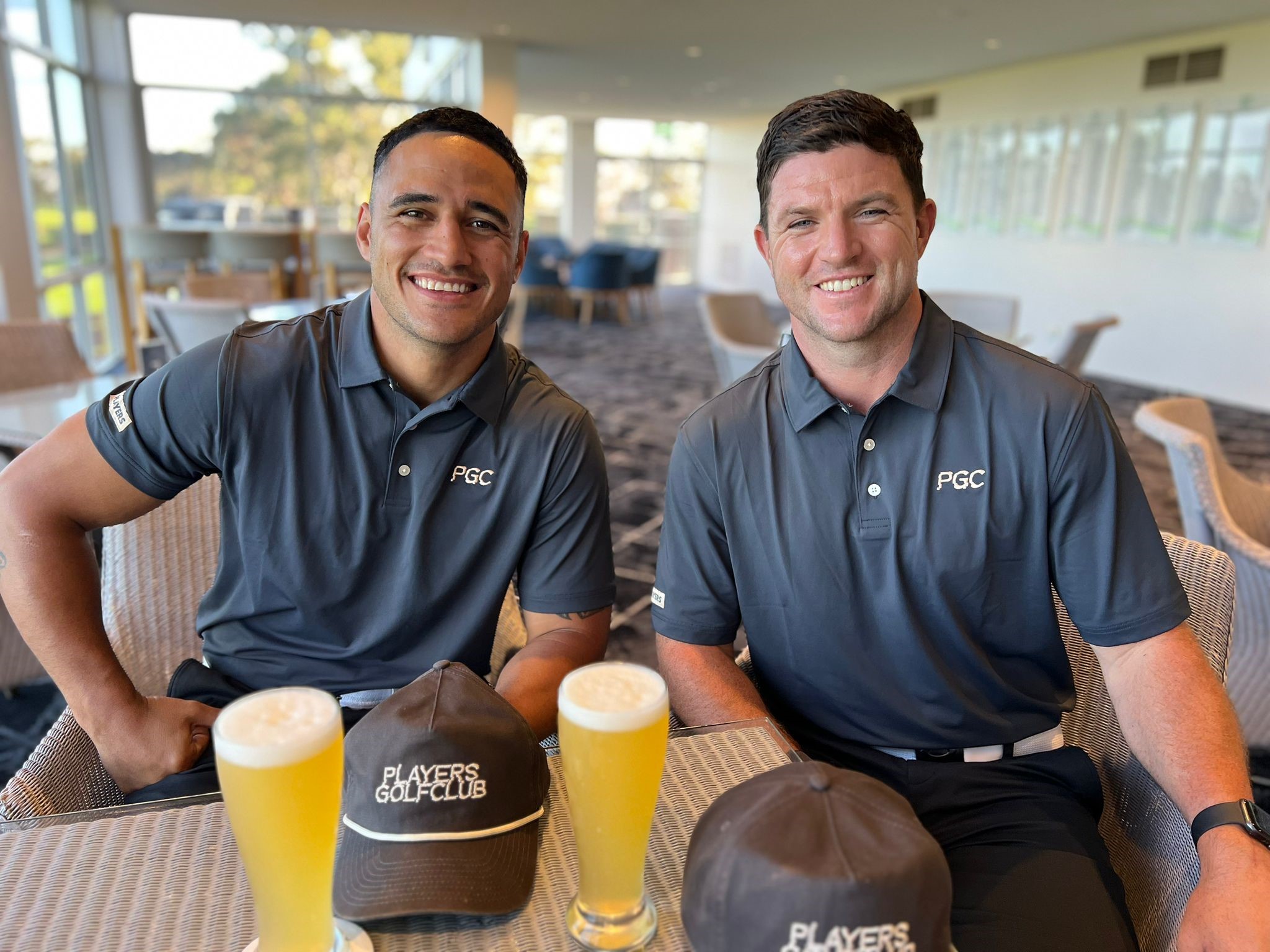 Former North Queensland Cowboys Val Holmes and Chad Townsend are Sydneysiders these days, turning out for the St George Illawarra Dragons and Sydney Roosters respectively. Yet their passion for golf and their Players Club social media and merchandise empire, forged in Townsville, has travelled into the deep south with them, as Matt Cleary found on a fine – if perilous to passing motorists – afternoon at Monash Country Club.