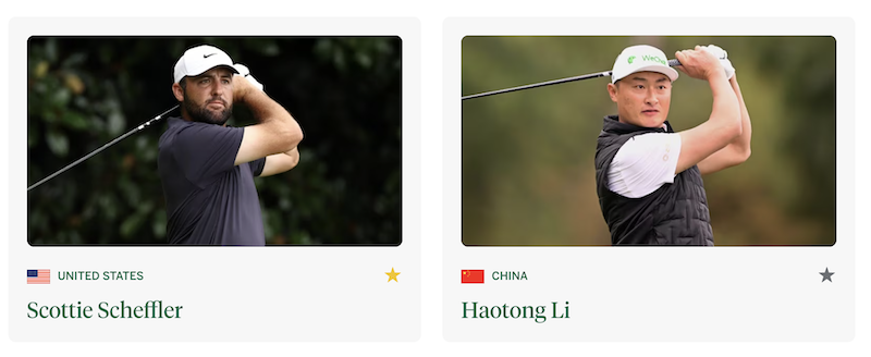1:52 p.m. ET: Scottie Scheffler and Haotong Li (Scheffler sits four back)